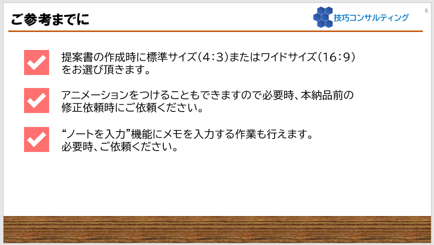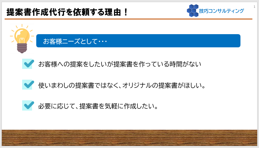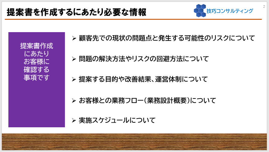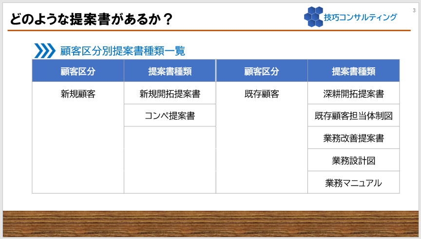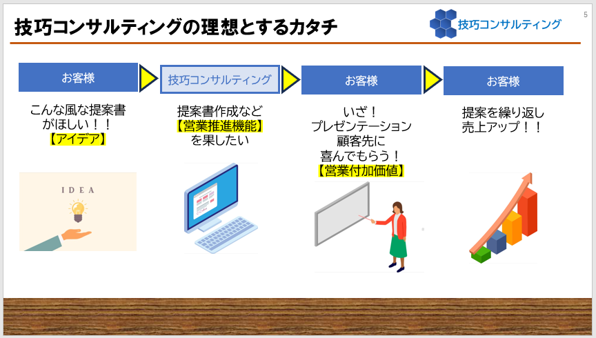 技巧コンサルティングで作成するご提案書の雰囲気をご確認ください。